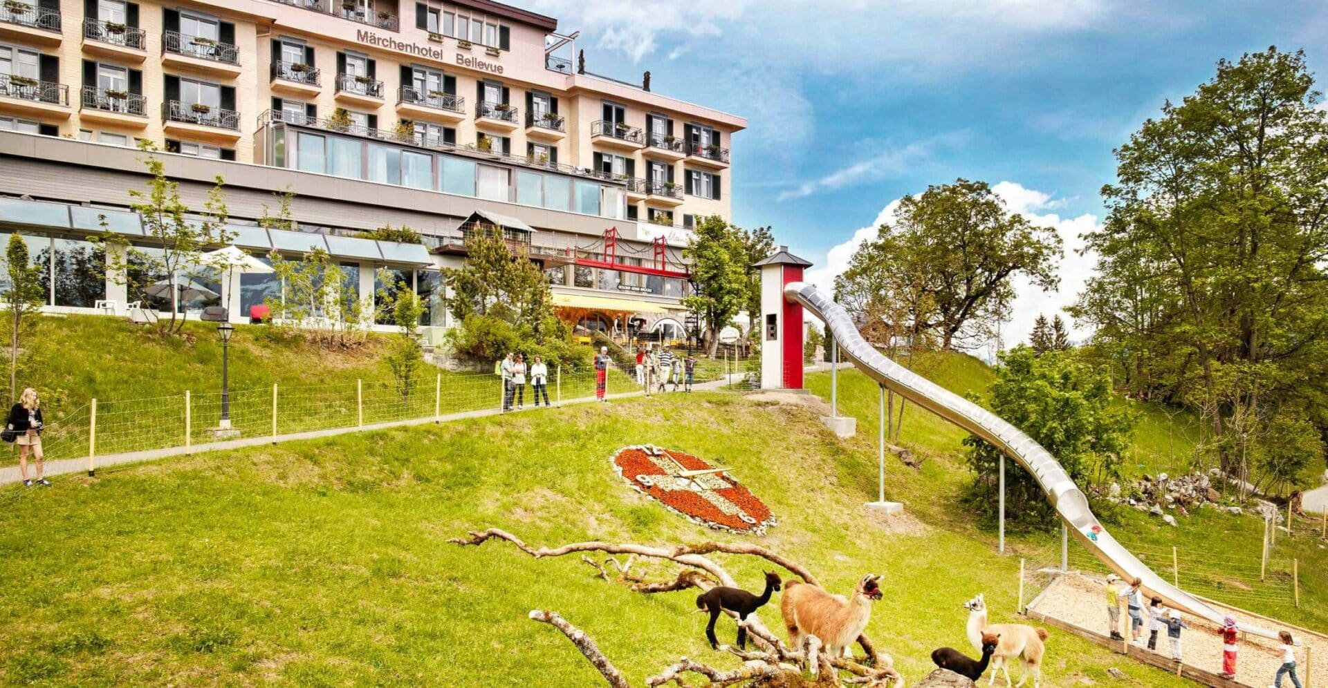 Hoch oben in der autofreien Bergwelt von Braunwald liegt ein Hotel, das seinem Namen alle Ehre macht: das Märchenhotel. Hier wird ein Aufenthalt zu einem zauberhaften Erlebnis für die ganze Familie. Im Winter verwandelt sich die Umgebung in ein wahres Schneeparadies, perfekt für Skiabenteuer, Rodelspaß oder Schneeballschlachten. Wer es gemütlicher mag, kann eine Wanderung mit Lamas und Alpakas unternehmen oder sich in der warmen, einladenden Atmosphäre des Hotels entspannen. Besonders für Kinder ist das liebevoll gestaltete Märliland ein echtes Highlight – mit einem riesigen Baum, Hängebrücken und geheimen Verstecken zum Spielen und Entdecken.